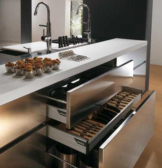 1、不锈钢橱柜台面是一体的,永远不会开裂。